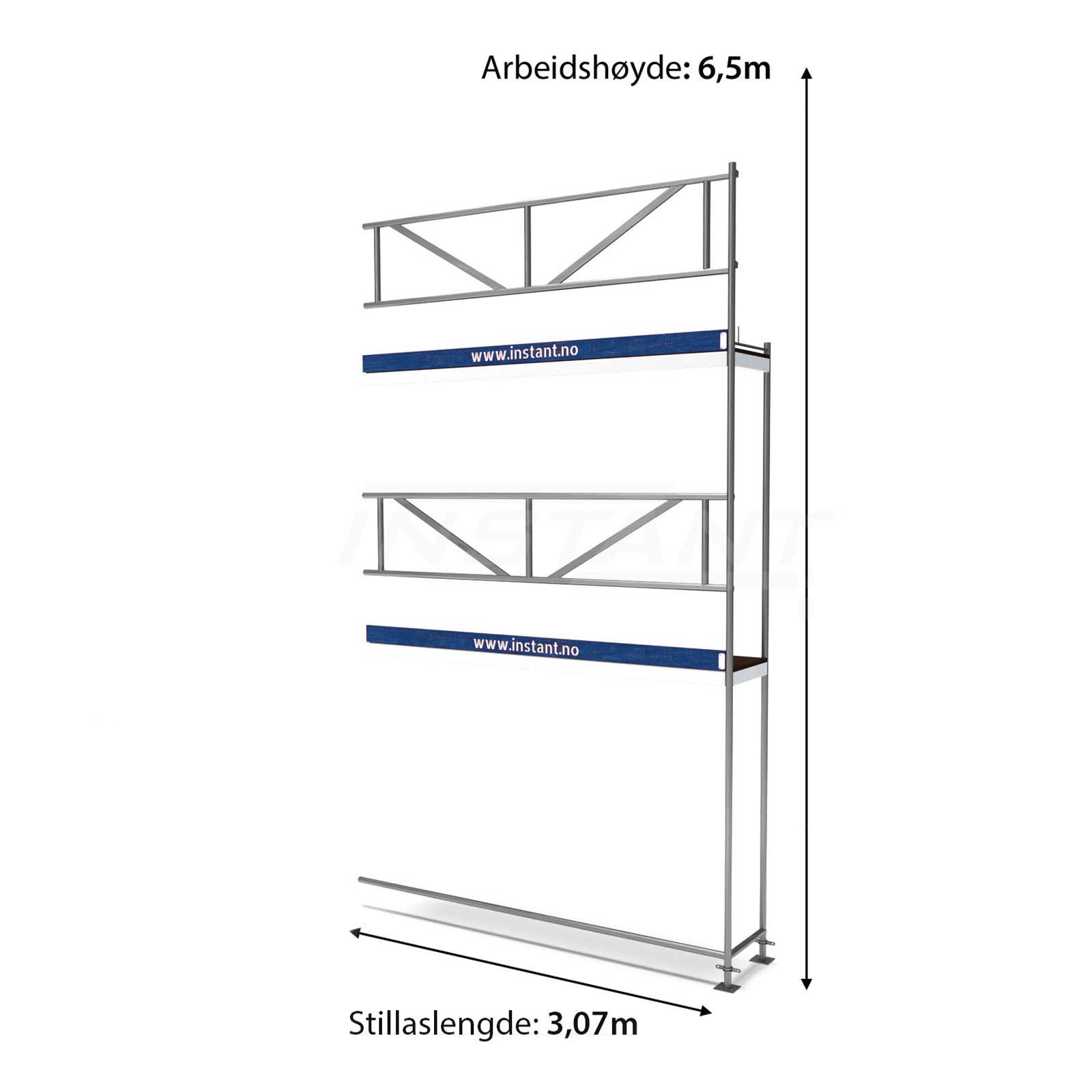 – Pagrindiniai pastoliai: 3,07m. Išsamios detalės ir pastoliams: 0,50m, 0,73m, 1,09m, 1,57m, 2,07m ir 2,57m
